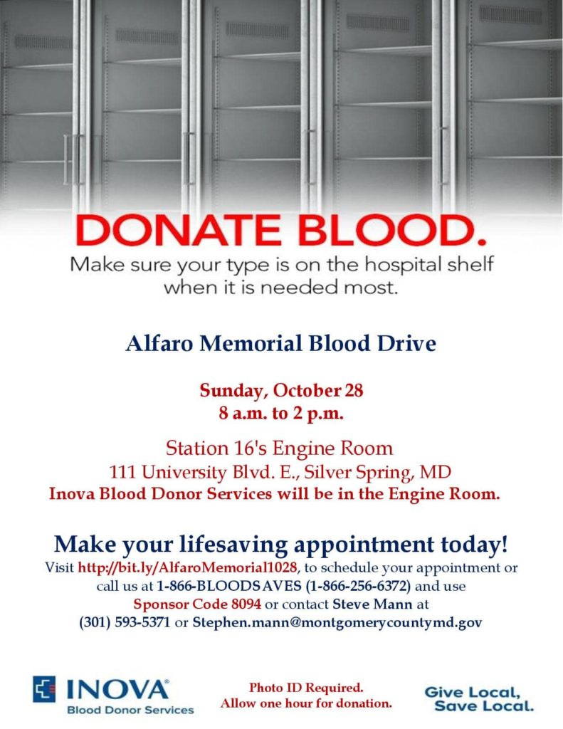 Will You Donate Blood at the Alfaro Memorial Blood Drive on Sunday, October 28?