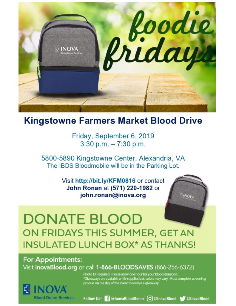Will You Donate Blood at the Kingstowne Farmers Market Blood Drive on Friday, September 6?
