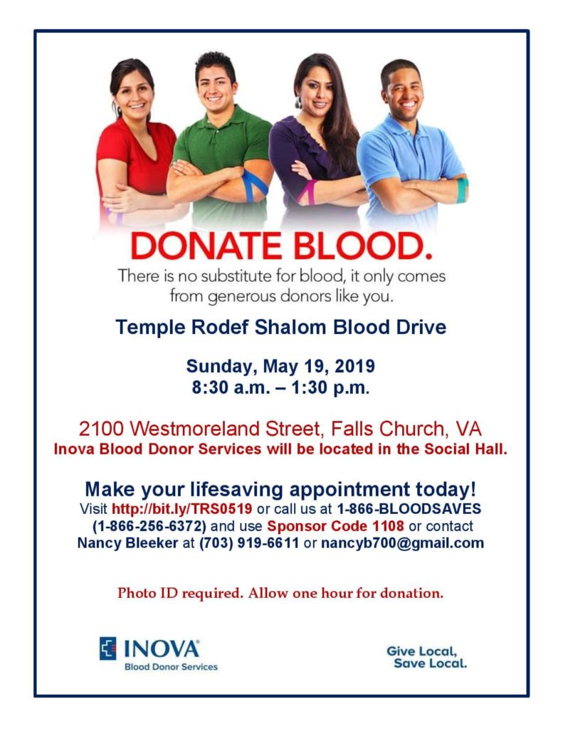 Will You Donate Blood at Temple Rodef Shalom Drive on Sunday, May 19?